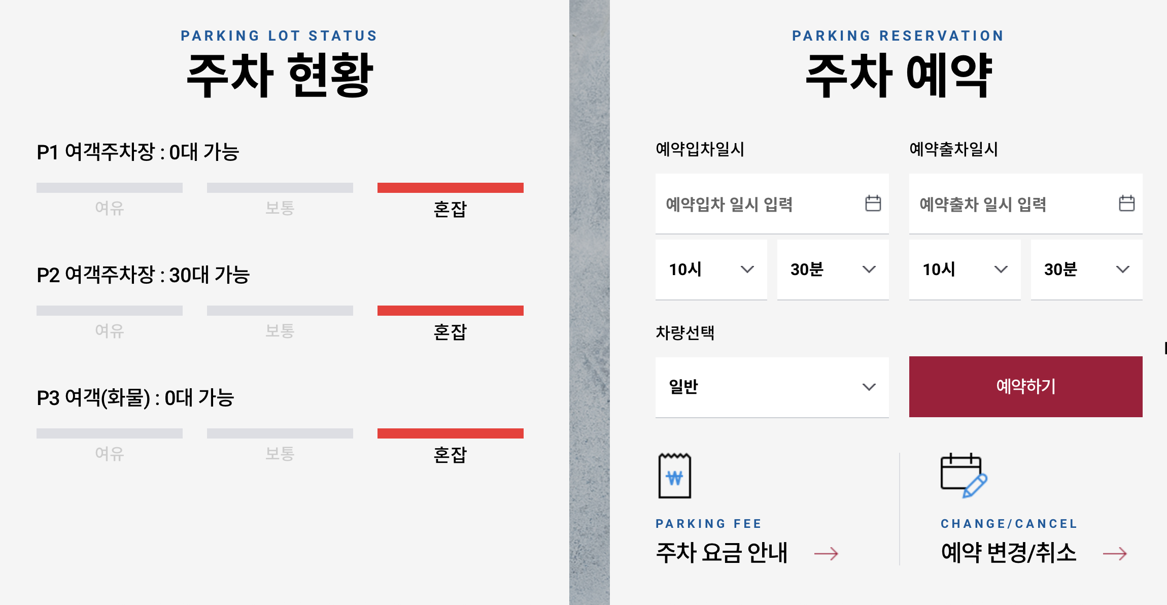 무료 주차 시간 | P1·P2: 10분 / P3: 20분 |