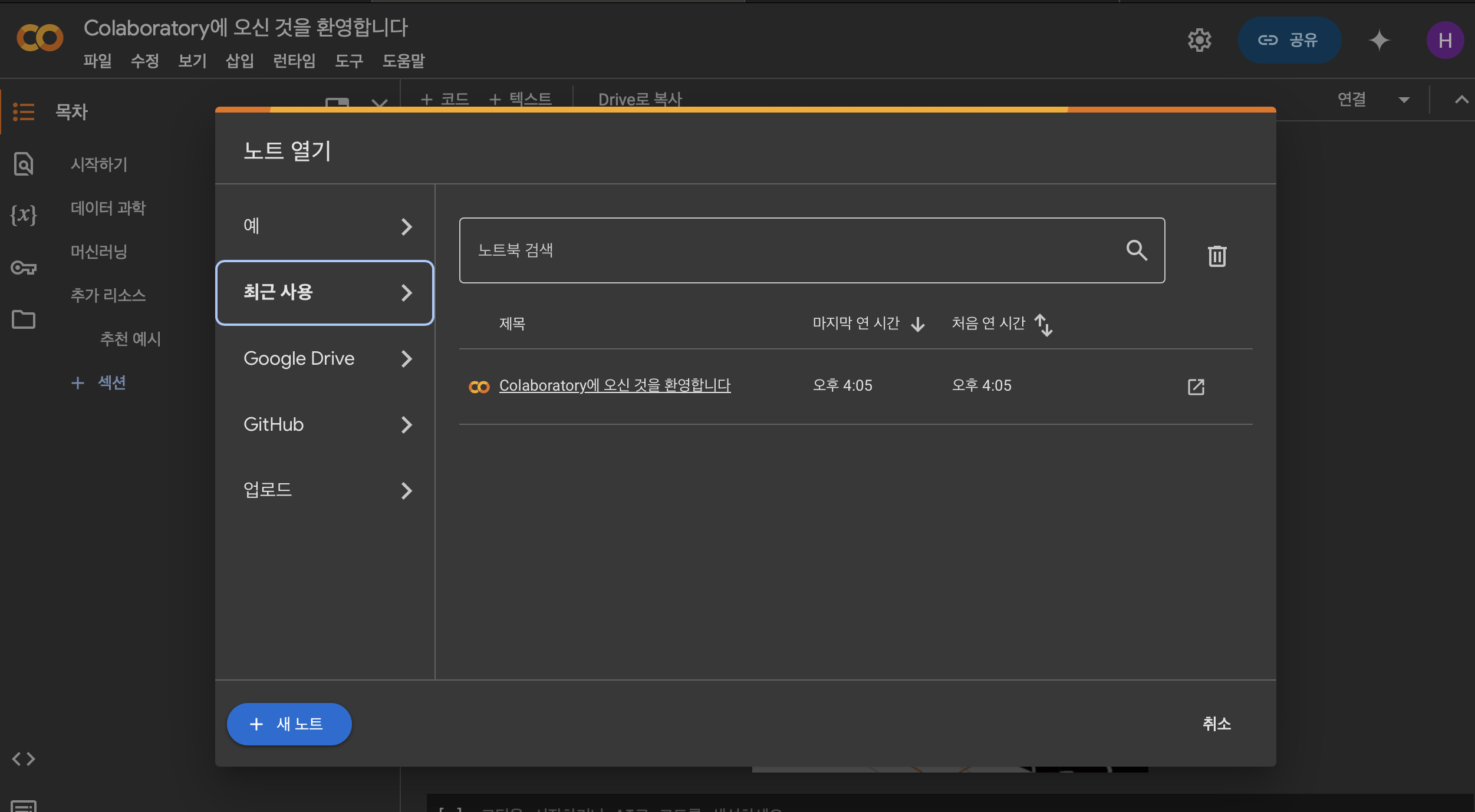 • 새로운 .ipynb 노트북이 생성됨