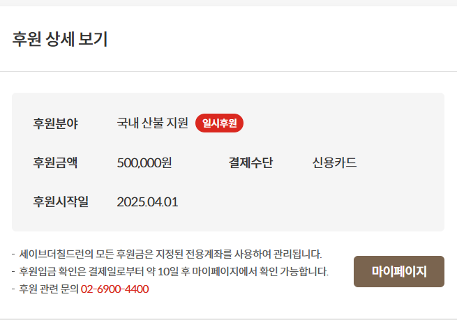 → “산불 긴급 기부” 캠페인 수시 진행