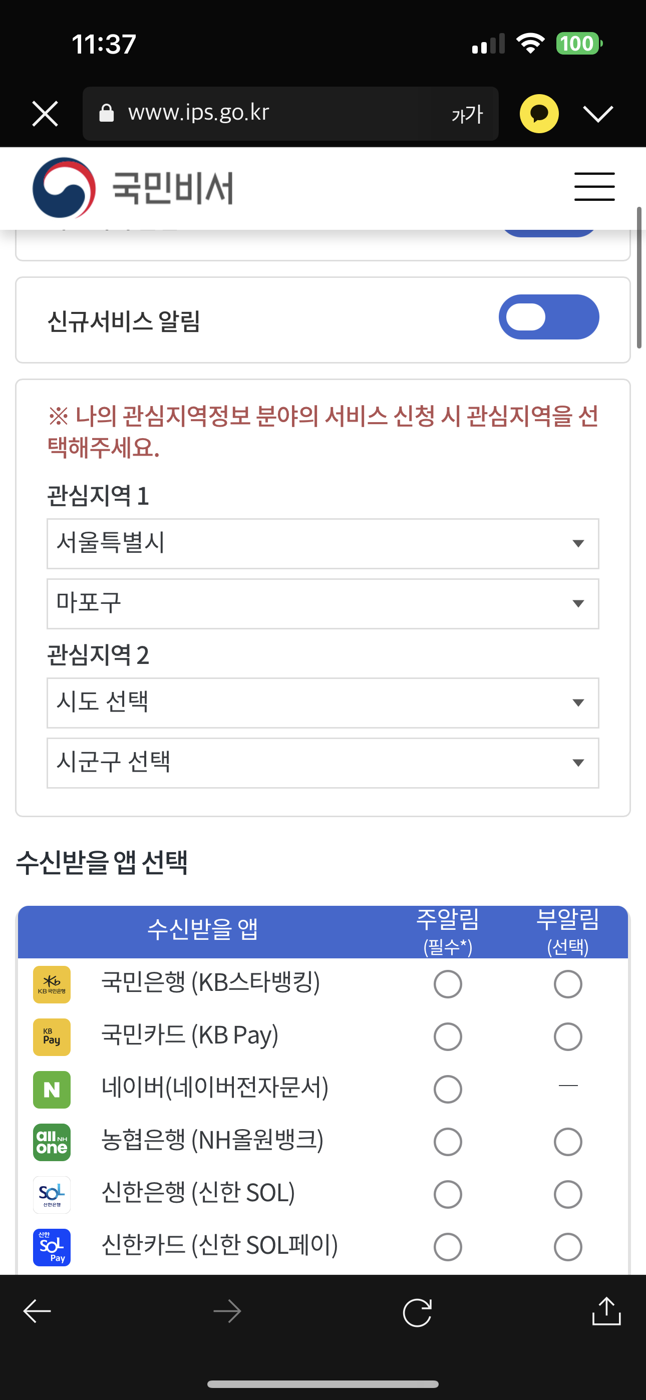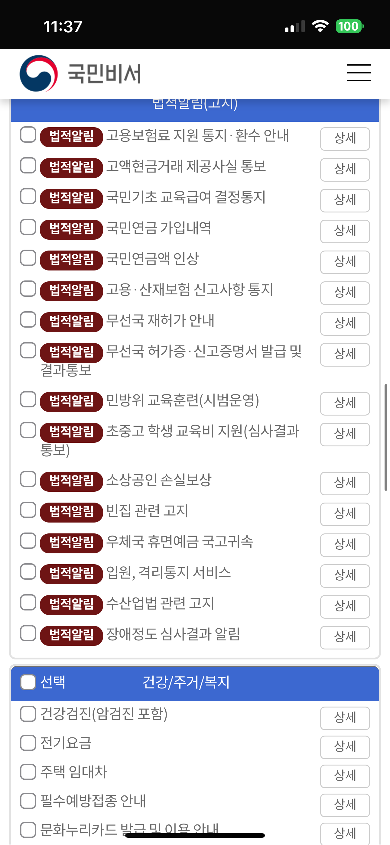 - 원하는 알림 서비스를 자유롭게 고를 수 있어요!