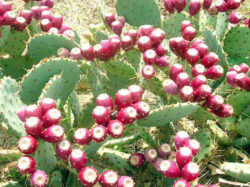 백년초는 손바닥 선인장(부채 선인장)의 일종으로,